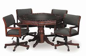 2 in 1 Game tables are versatile, attractive and comfortable. These poker style tables convert into a dining table by simply flipping the top. So whether you are having a card game at the house or enjoying a meal, they work perfect for either one. Most of these game Tables from American Heritage have a place for drinks and poker chips and include the adjustable game chairs. For the best selection and the best discount on 2 in 1 poker tables, Family Leisure is your place.